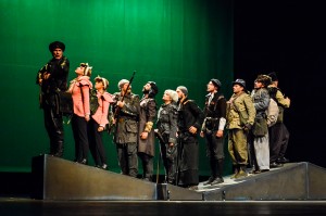 С чувство за хумор авторите определят пиесата си като партизански комикс, но тя прилича и на монументално театрално платно, върху което се разиграват сцени на битки, предателства, смърт и оцеляване.