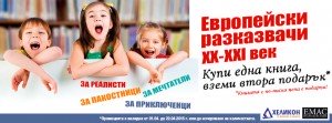 Нова любопитна промоционална кампания стартира от днес1 1 април, в книжарници „Хеликон“. Всеки клиент на веригата, купил си една книга от поредицата на издателство ЕМАС „Европейски разказказвачи на ХХ и ХХI век“, може да получи втора книга от серията като подарък. Кампанията важи до 22 април или до изчерпване на количествата като подарък е заглавието с по-ниска корична цена.